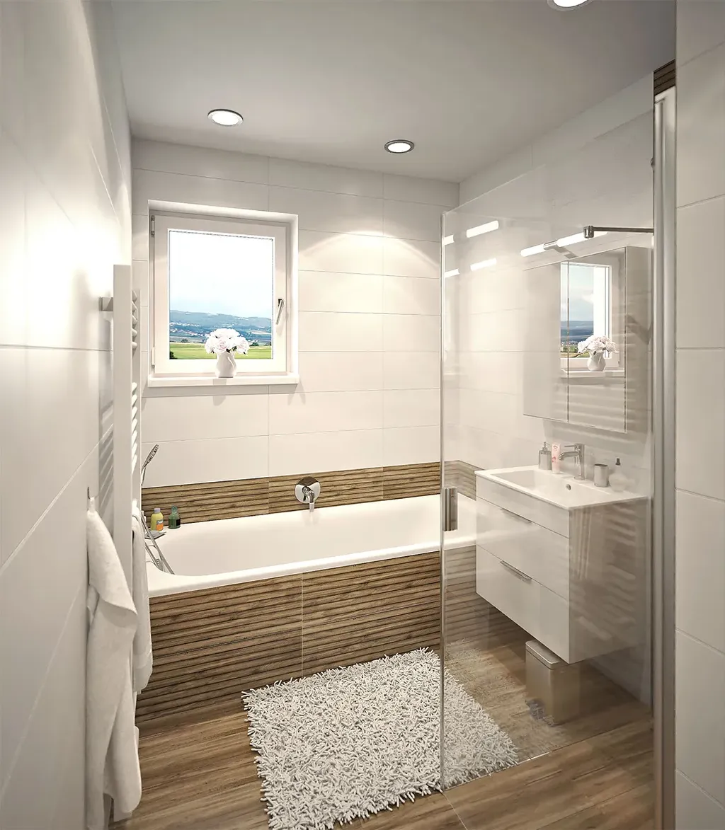 Ve vyšším standardu je rozpočet na tyto dokončovací práce cca 700tis. s tím, že počítá s velkoformátovými obklady, vinylovou podlahou atd. Tyto náklady je třeba připočíst ke kupní ceně.