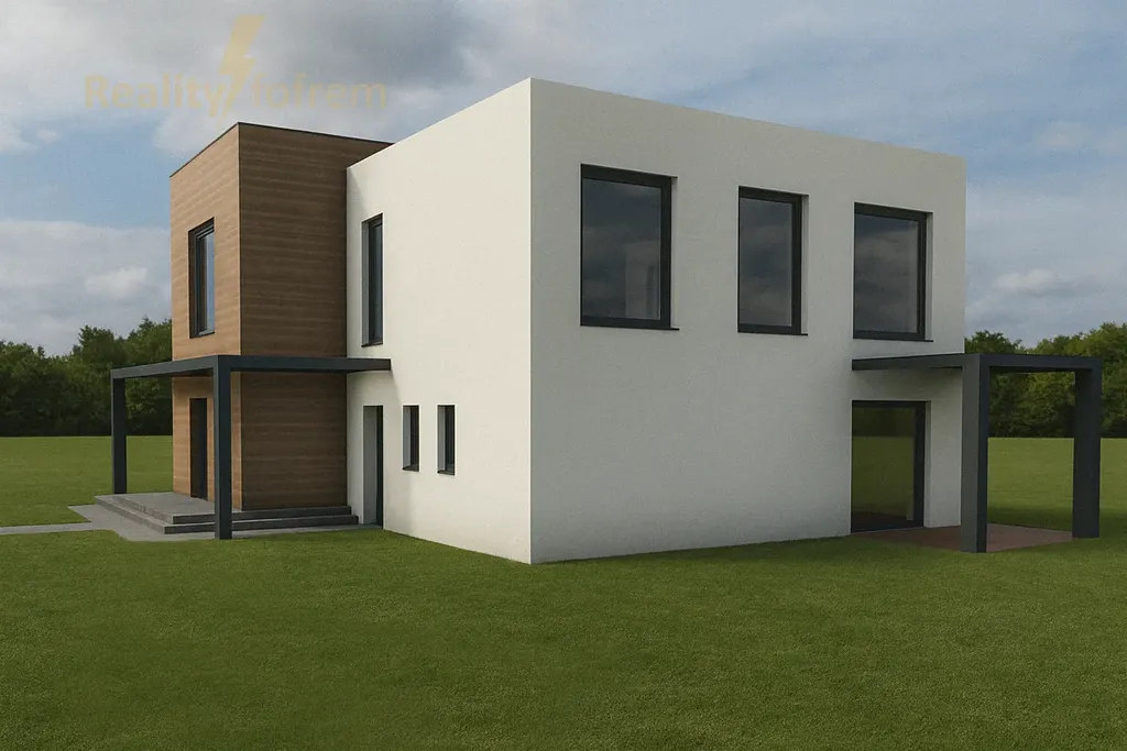 Dům je navržen jako dvoupodlažní objekt s moderním architektonickým řešením a důrazem na funkční dispozice.