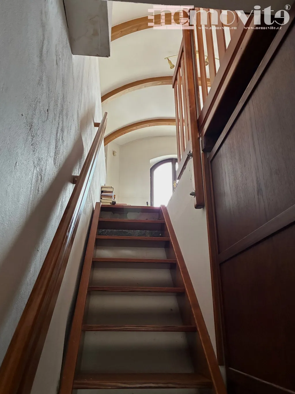 V horním patře se nachází samostatný ateliérový prostor, který lze využít jako pracovnu, studio, relaxační zónu nebo pokoj pro hosty. Z ateliéru je možný vstup na střechu, kde lze po dohodě vytvořit příjemné posezení s výhledem na Bílou věž a panorama Hradce Králové.