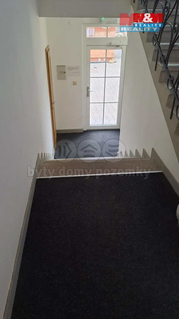 Zabezpečovací zařízení a elektronický systém otevírání dveří, kompletně vybavená kuchyň, možnost vyhrazeného parkování za domem (není v ceně pronájmu).