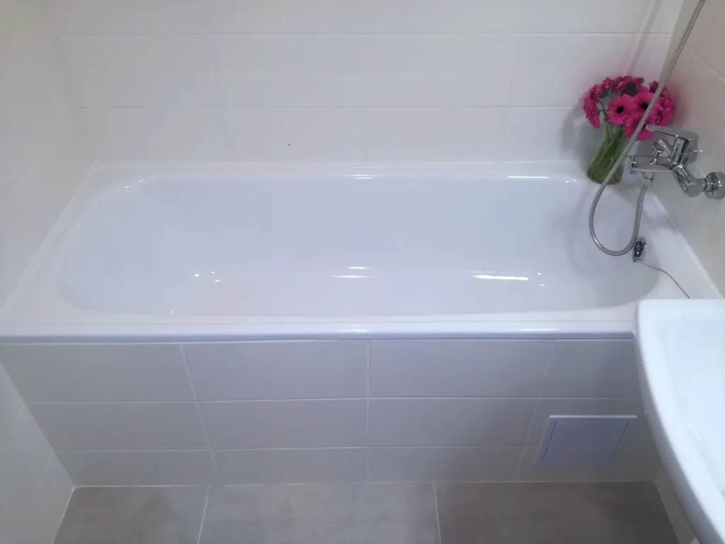 Byt má vyzděné jádro, nové podlahy, rozvody, omítky, nové interiérové dveře. Koupelna s vanou a umyvadlem a s možností připojení pračky, toaleta je odděleně. Kuchyňská linka je opatřena plynovým sporákem a elektrickou troubou s možností připojení myčky.