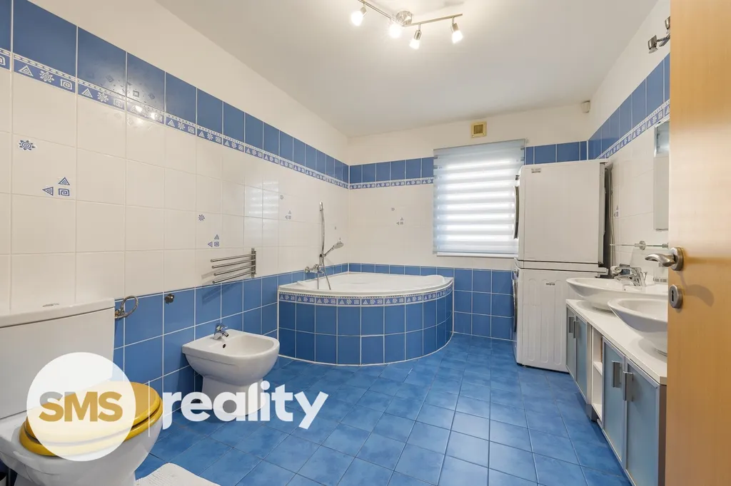 K domu přiléhá oplocená prostorná zahrada a nádvoří se samostatně stojící garáží o velikosti 23 m² a dalším zastřešeným parkovacím místem, zastřešeným posezením s grilem (22 m²) a nakonec krytým bazénem se slanou vodou. Na oplocené zahradě pak najdete dostatek prostoru jak pro Vás, tak i pro Vaše děti. Najdete zde i skleník pro pěstování bylinek či čerstvé zeleniny.