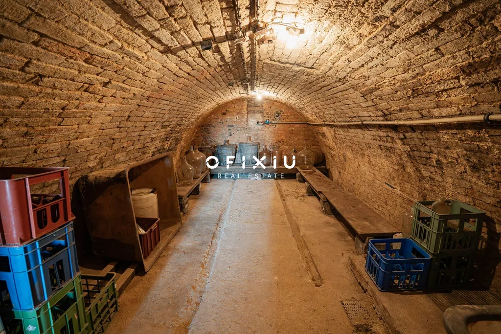 Dispozici domu tvoří vstupní chodba, kuchyně, obývací pokoj, dvě ložnice, jídelna, koupelna a samostatné WC. Součástí nemovitosti je také technická místnost, obytná veranda a půdní prostor s možností budoucího rozšíření obytné části. Dům je částečně podsklepen – sklepní prostory zahrnují dva klasické sklepy a samostatný vinný sklep o celkové výměře přibližně 24 m², který nabízí ideální zázemí pro skladování vína či potravin.