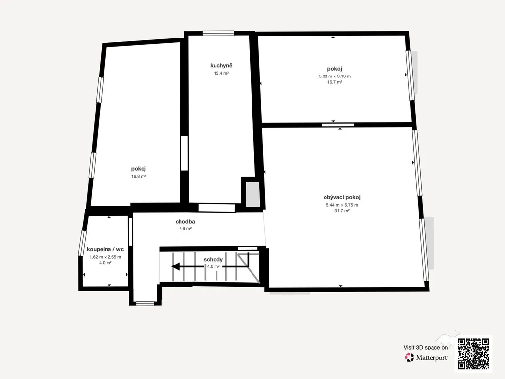 Podkroví o výměře 32 m² pak nabízí dva pokoje a další prostory pro rozšíření obytné části.