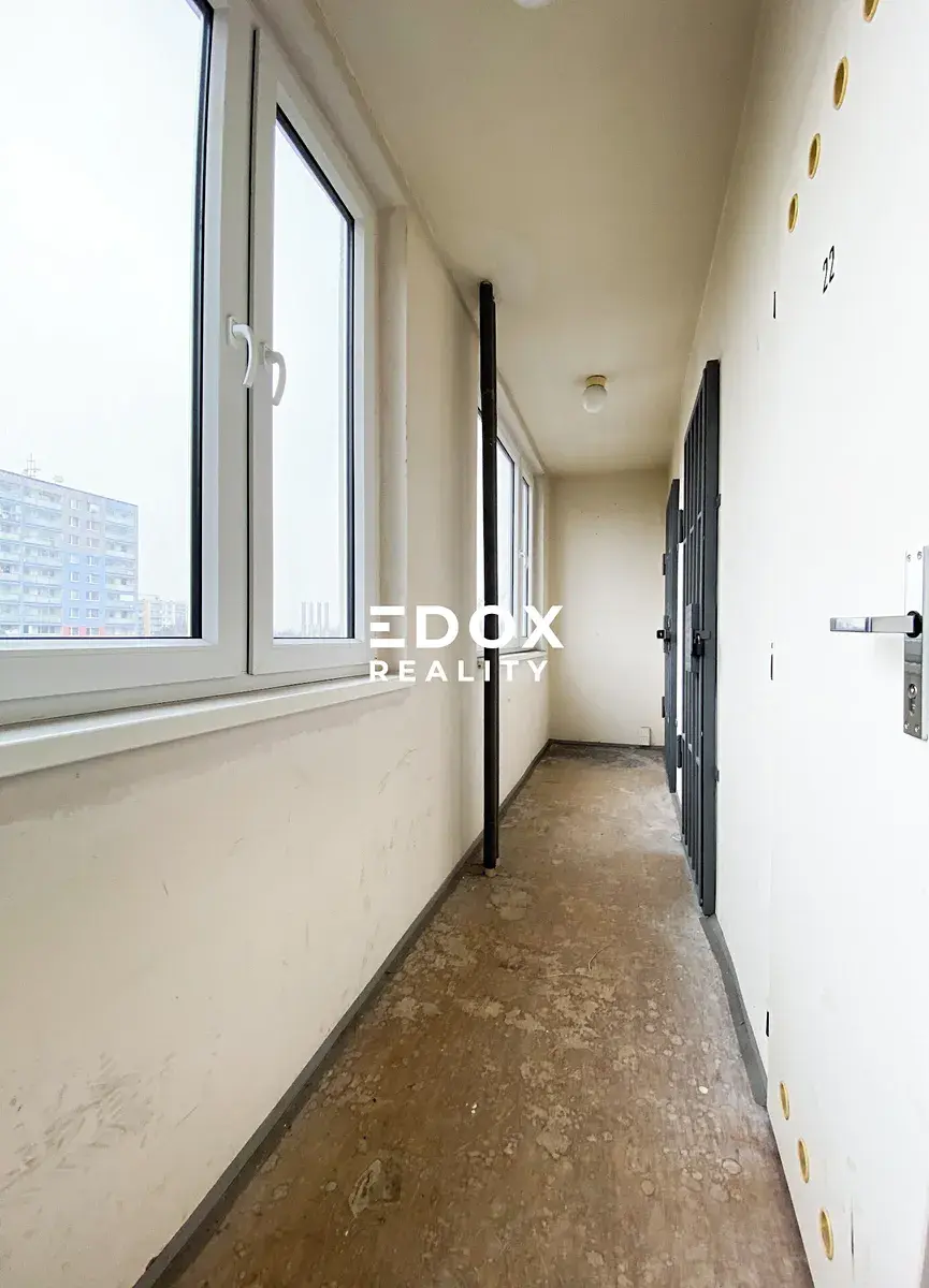 Bytová jednotka je umístěna v osmém nadzemním podlaží a je dispozičně řešena jako obývací pokoj, ložnice, dětsky pokoj, kuchyň, předsíň, koupelna, samostatné WC, prostorná lodžie a zděný sklep ve 4 patře.