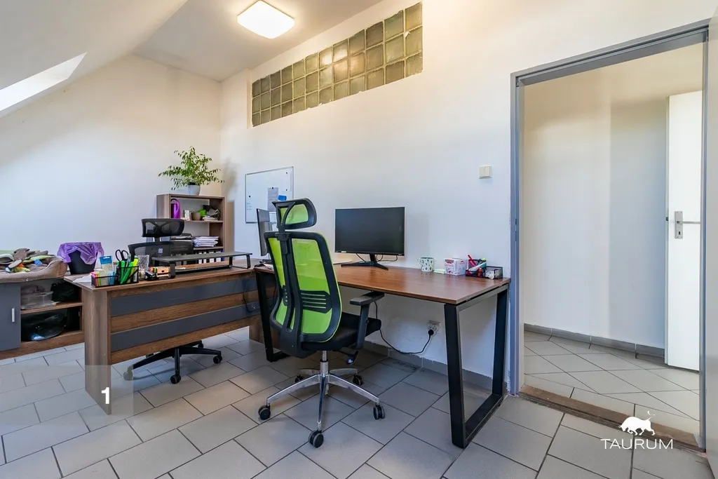 2 kancelářské prostory ve zděné budově o celkové výměře 124 m2, velmi dobrý stav, kuchyňka, umývárna