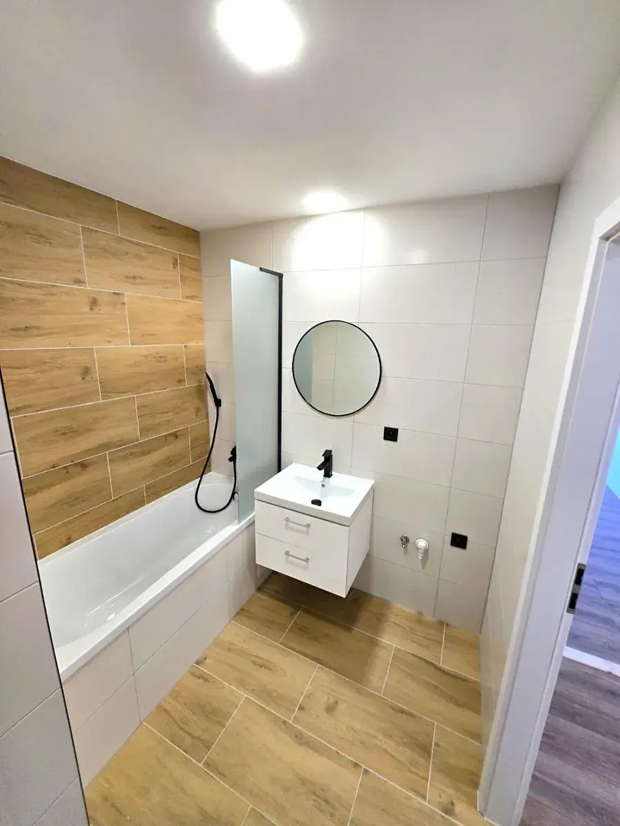 Byt prošel velice zdařilou a nákladnou rekonstrukcí, jsou zde nové podlahy, výmalba a interiérové dveře s obložkami. V kuchyni je moderní kuchyňská linka s elektrickými kamny a varnou deskou s digestoří. V koupelně je vana se sprchovou zástěnou, umyvadlová skříňka se zrcadlem a WC, přípojka na pračku připravena.