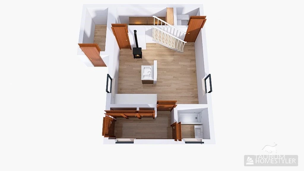 Chata je třípodlažní, s kamennou podezdívkou (přizemní podlaží). Další 2 podlaží jsou dřevostavba. Podkroví je kompletně nově zrekonstruované a je v něm ložnice. Ve středním podlaží je velký obývací prostor, předsíňka, WC, vstup z venku a široký balkon s pěkným výhledem. Z této předsíňky by šla udělat koupelna, což byl i záměr současných majitelů. Toto střední podlaží lze jednoduše zevnitř zateplit (sejmutím vnitřních desek, přidáním izolace a zaklopení palubkami jako v horním podlaží). V přízemí jsou další prostory kuchyňský kout, jídelní kout, koupelna, komora, technický prostor a další vstup do chaty. Přízemí je připraveno na dokončení rekonstrukce. Vedle je i boční sklepní prostor pod venkovním schodištěm.