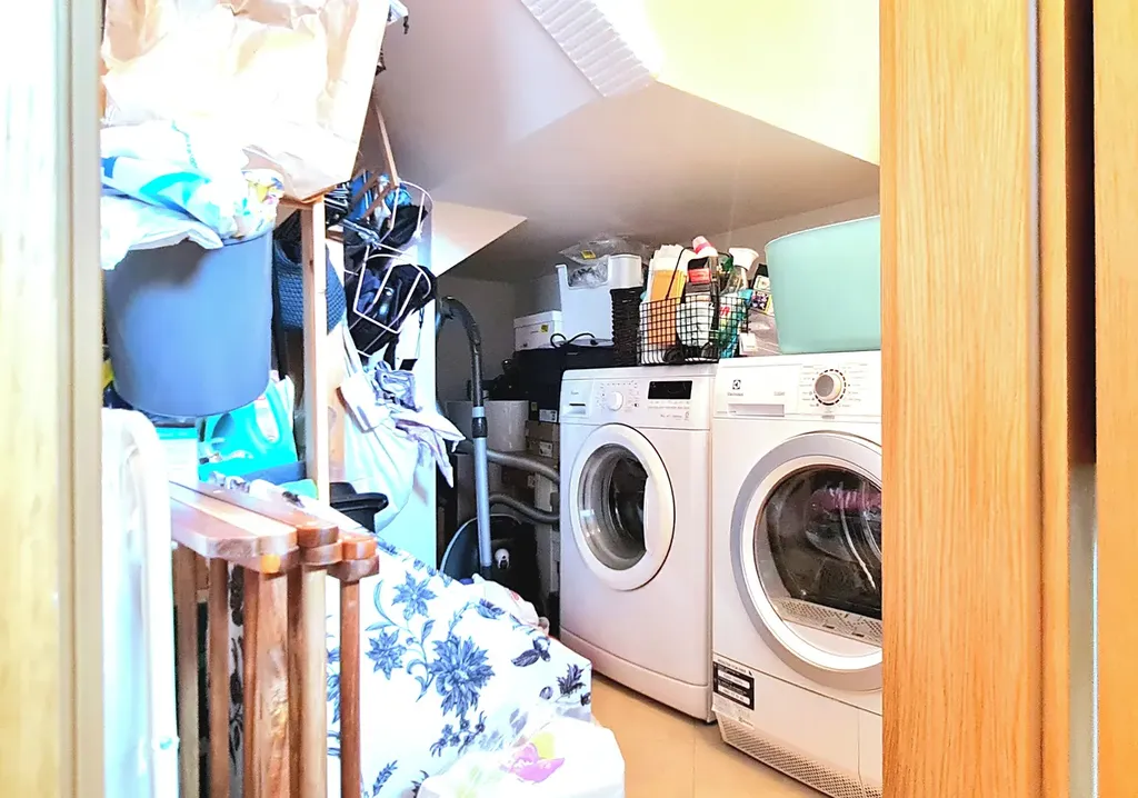 Přízemí: Dominantou je prosluněný obývací pokoj propojený s plně vybavenou kuchyní a jídelnou, odkud je přímý vstup na zahradu o výměře 91 m² – ideální velikost pro relaxaci bez nutnosti náročné údržby. Dále zde najdete koupelnu se sprchovým koutem a praktickou technickou místnost (místo pro pračku, sušičku i úložné prostory). Samozřejmostí je přímý vstup do vlastní garáže.