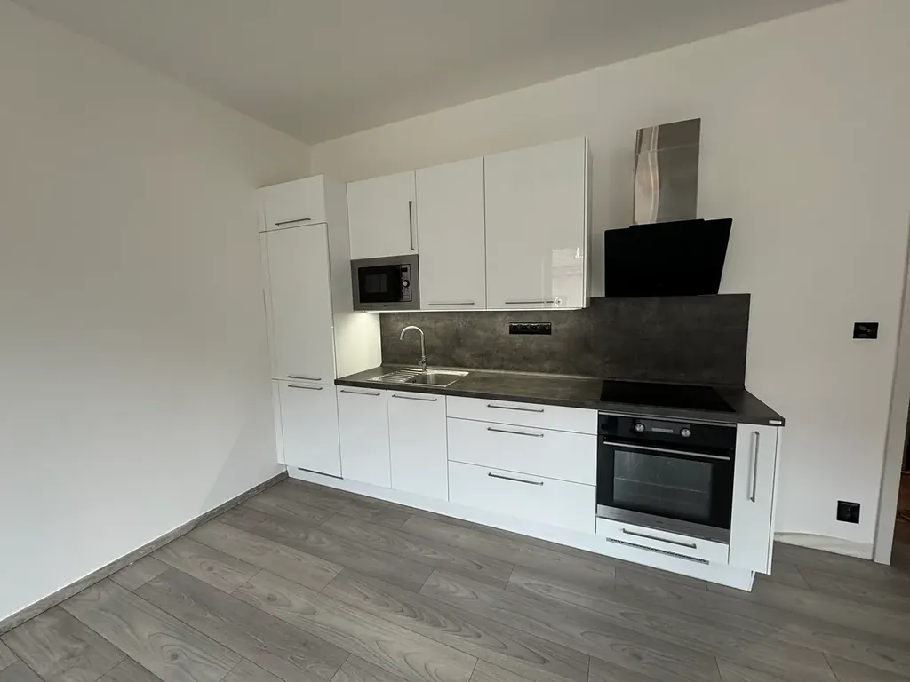 Exkluzivně nabízíme k pronájmu tento prostorný byt o dispozici 1+kk a rozloze 47 m2 nacházející se ve 3.NP cihlového domu bez výtahu. Hlavní obytná místnost je opticky rozdělena designovým policovým dílem a tím je prostorově oddělen prostor pro postel od obývacího pokoje s kuchyňským koutem. Součástí vybavení bytu je nová kuchyňská linka včetně spotřebičů, součástí vybavení bytu je i pračka umístěná ve vestavěné skříni v chodbě. Byt má samostatný elektro kotel. Na podlaze je plovoucí podlaha a v koupelně dlažba. Byt byl nedávno kompletně zrekonstruován. Je zde dostatek úložných prostor díky velké vestavěné skříni v předsíni.