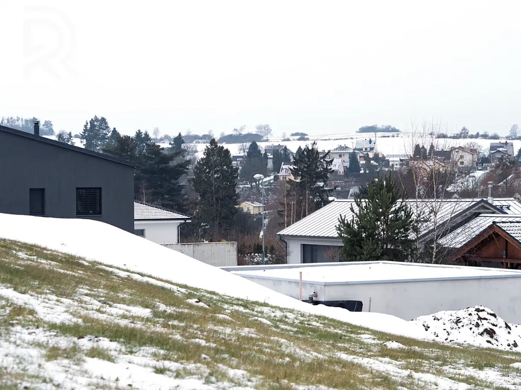 Pozemek má 1 017 m², je jižně orientovaný, svažitý a nabízí otevřený výhled, který vám už nikdo nevezme. Nad domem se dle územního plánu nebude stavět – klid a panorama zůstanou jen vaše.