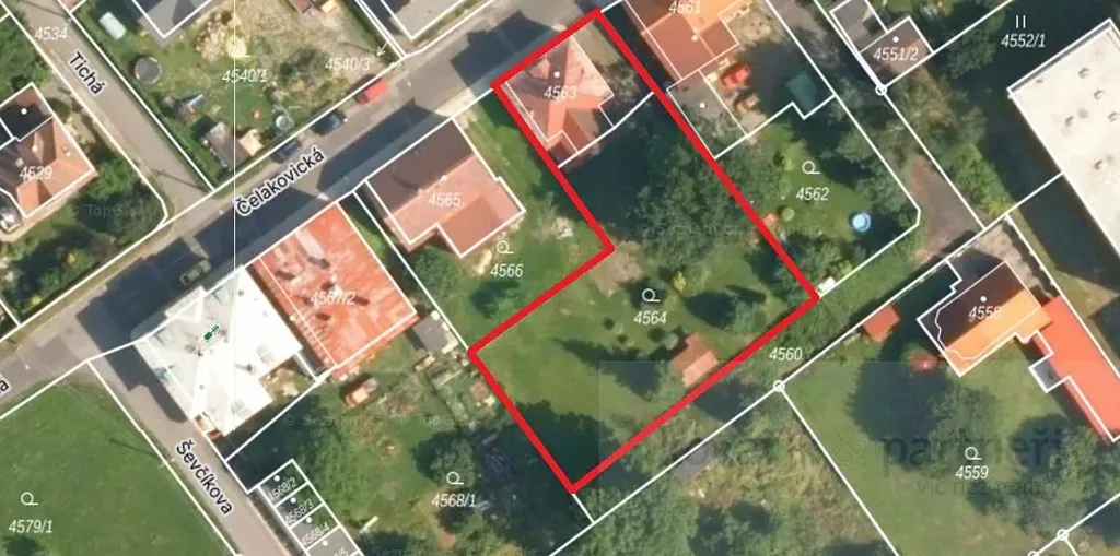 Pozemek: 1454 m2 ( zast. plocha 136 m2 ) Zatížení služebností v řešení.