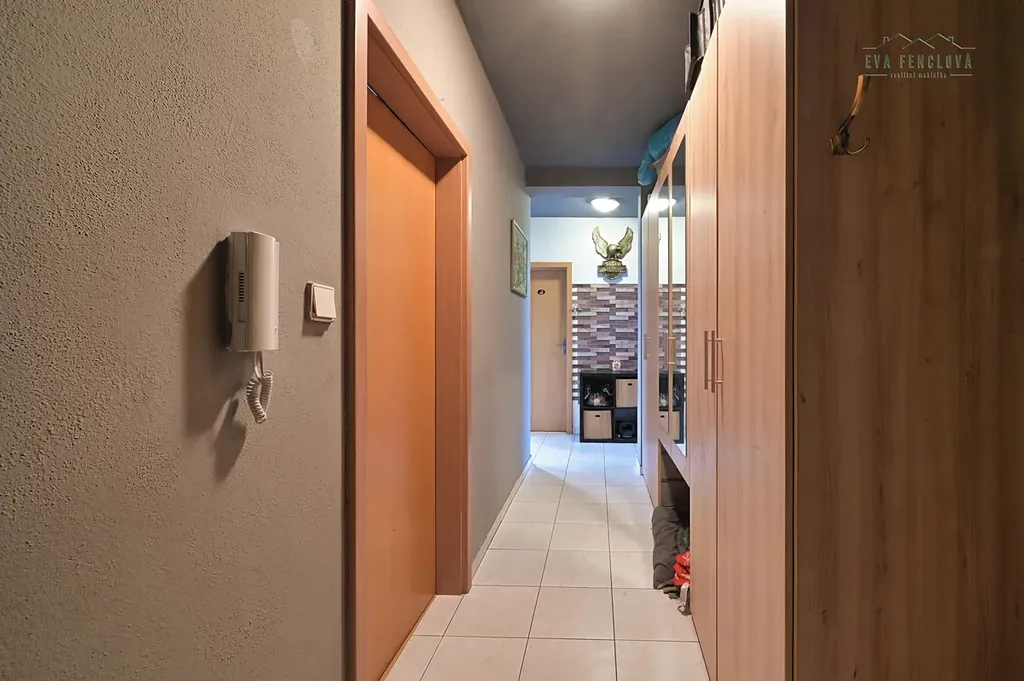 Byt s nově zrekonstruovanou kuchyňskou linkou se nachází ve druhém patře bytového domu.