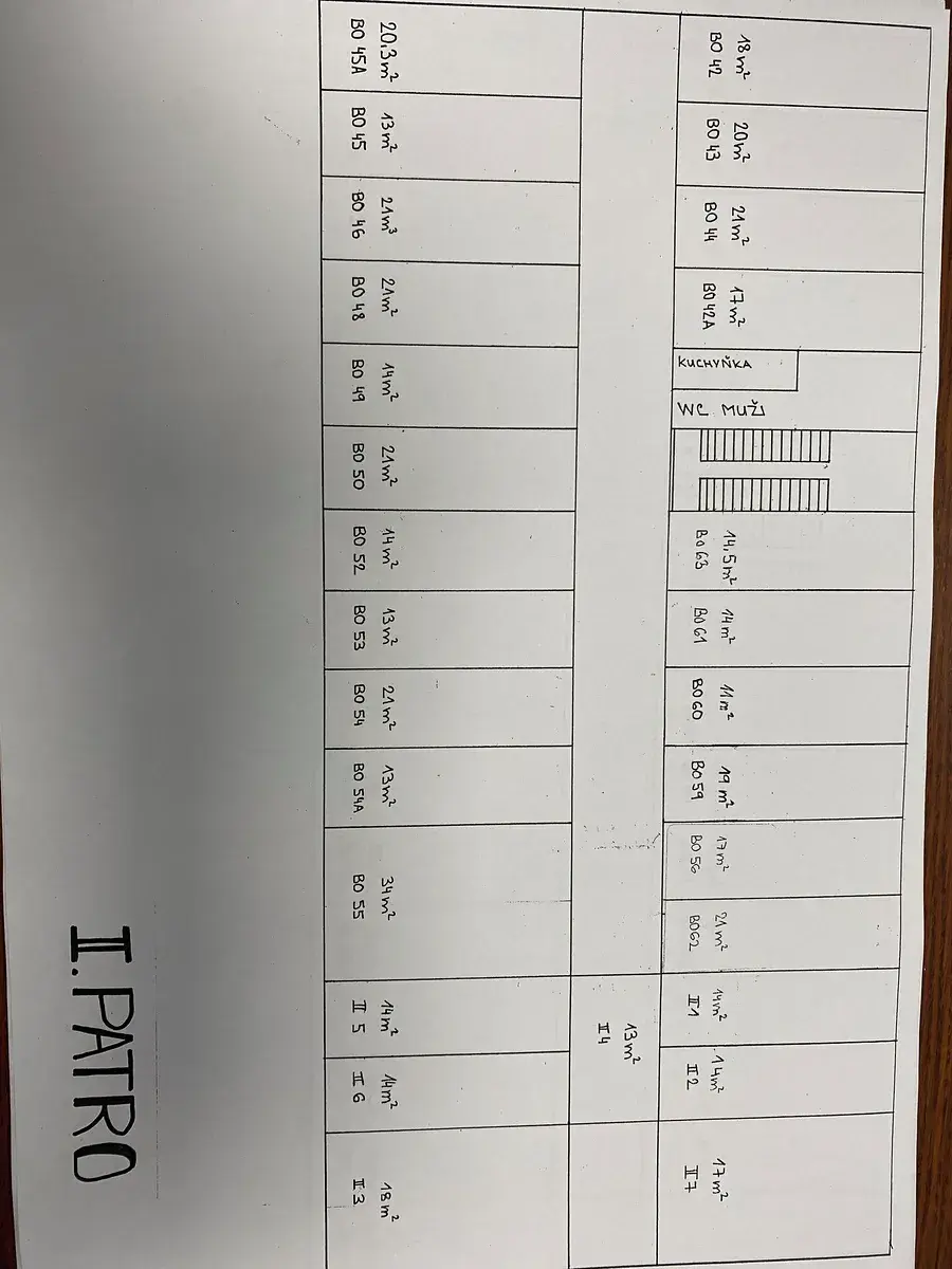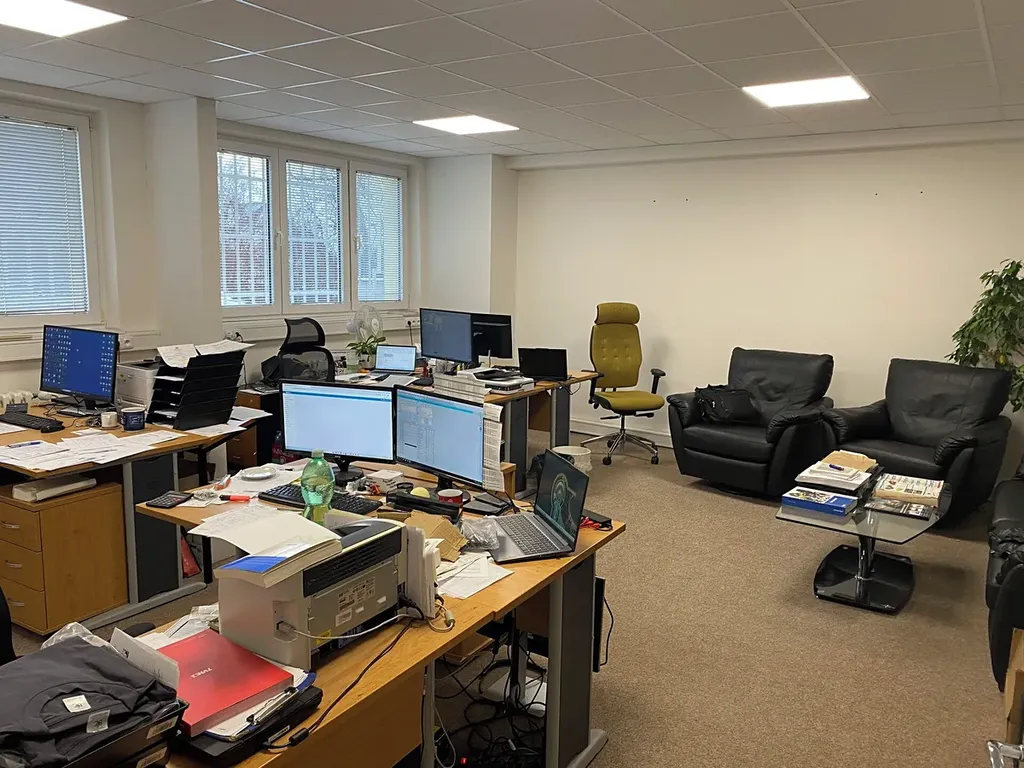 Přízemí - kancelář 17 m2 + 17 m2 + 18 m2 + 36 m2. Tyto kanceláře jsou v levé části přízemí objektu. Mají společnou chodbu, která je pod uzavřením.