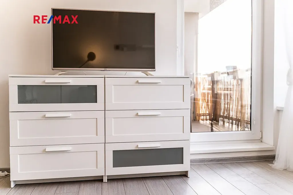 Celková plocha bytu je 62 m2 dispozice - obývací pokoj se sedací soupravou a stolkem a TV, jídelní část s kuchyňským koutem vybaveným spotřebiči - kombinovaná lednice s mrazákem, myčka, varná deska, trouba, mikrovlnka - ložnici - postel a prostorná šatní skříň - koupelna - vana, umyvadlo - samostaná toaleta - komora a prostorná velká chodba.