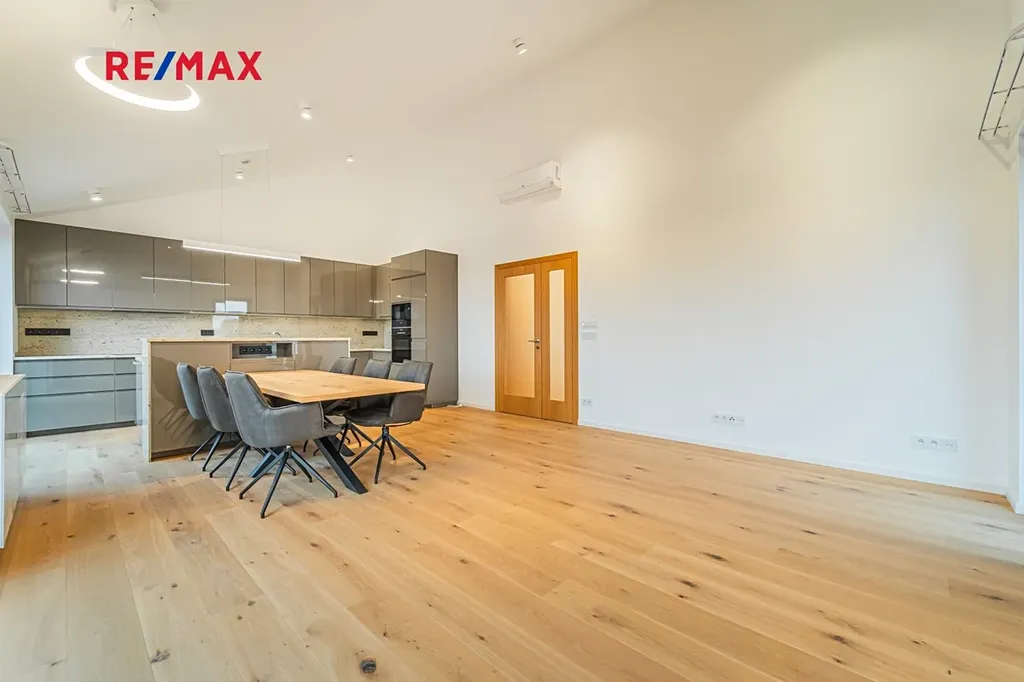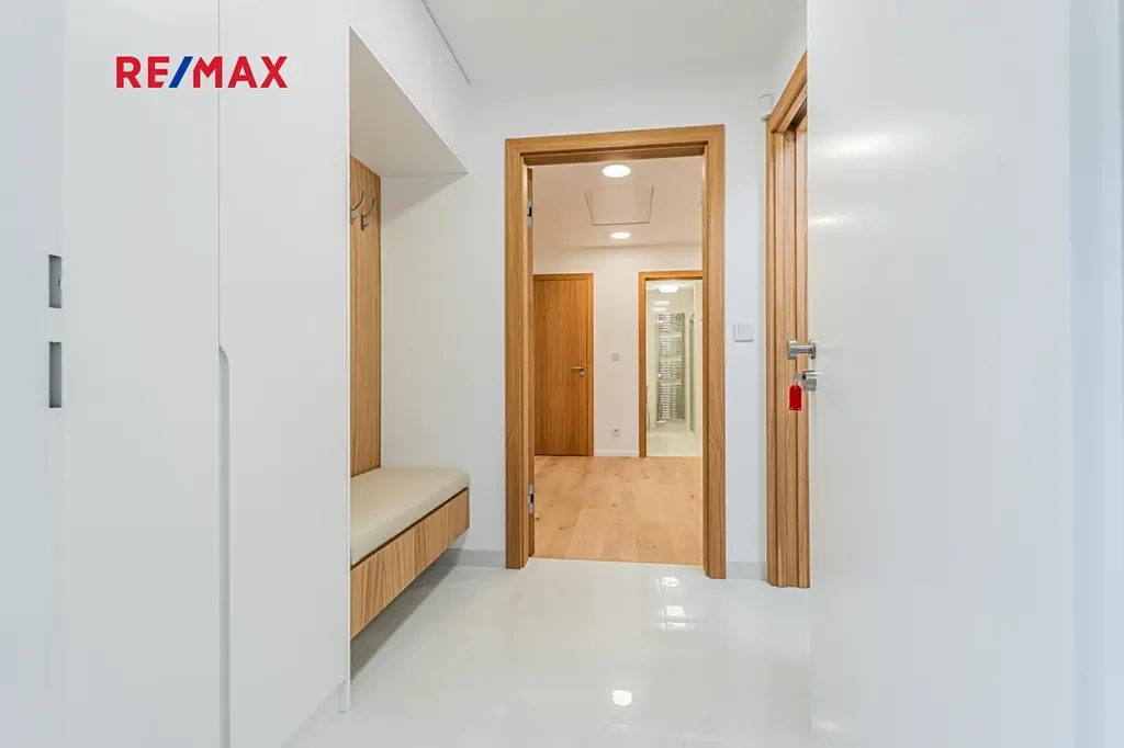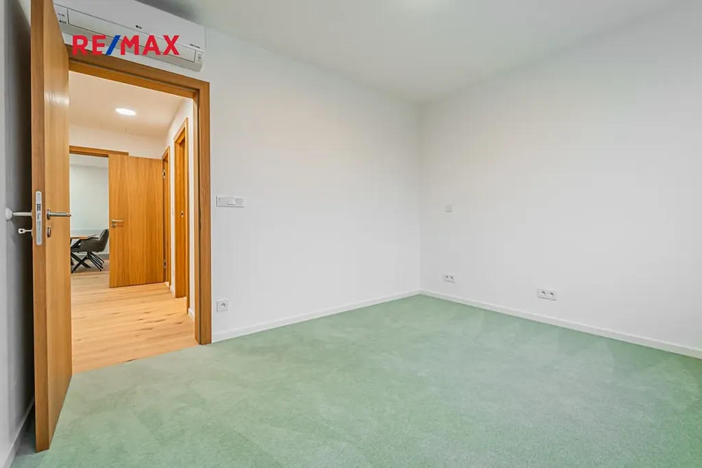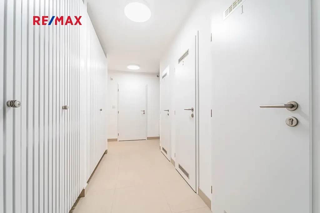 Byt je vybaven novou kuchyňskou linkou na míru včetně spotřebičů Bosch, klimatizací, zabezpečovacím alarmem a vestavěnými skříněmi. Součástí pronájmu je sklepní kóje a dvě venkovní parkovací stání. V domě je k dispozici společná místnost s pračkou a sušičkou. K bytu patří také společná zahrada s vlastním venkovním posezením a grilem.