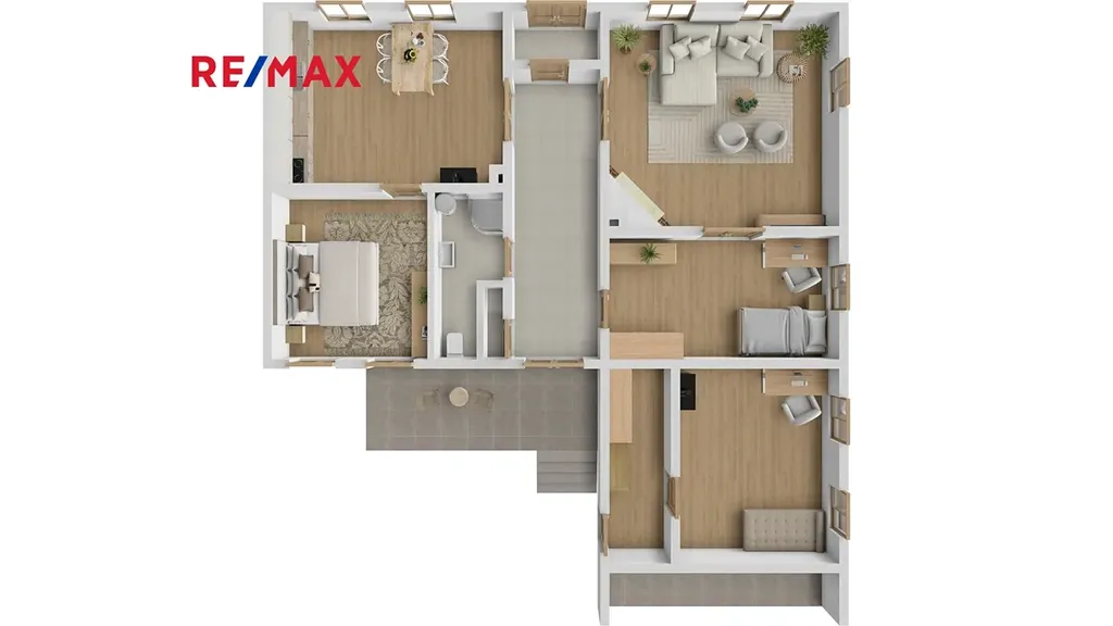 Za obývacím pokojem je situován třetí pokoj s vlastním vstupem z chodby.
