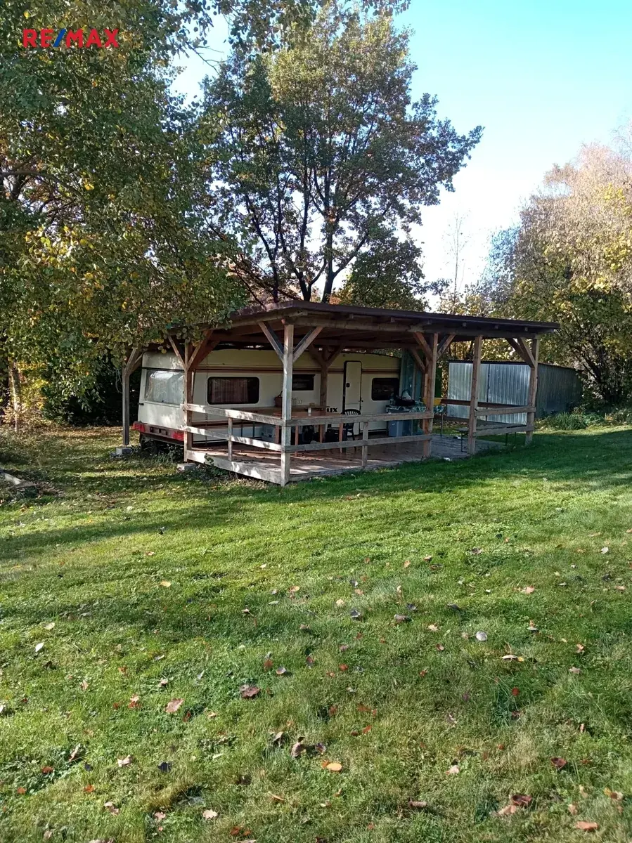 Doposud sloužil pozemek jako rekreační místo, je zde umístěn mobilní rekreační objekt zřízený z karavanu s přistavěnou pergolou. Toto přístřeší lze tedy využít jako dočasné zázemí při stavbě nové nemovitosti.