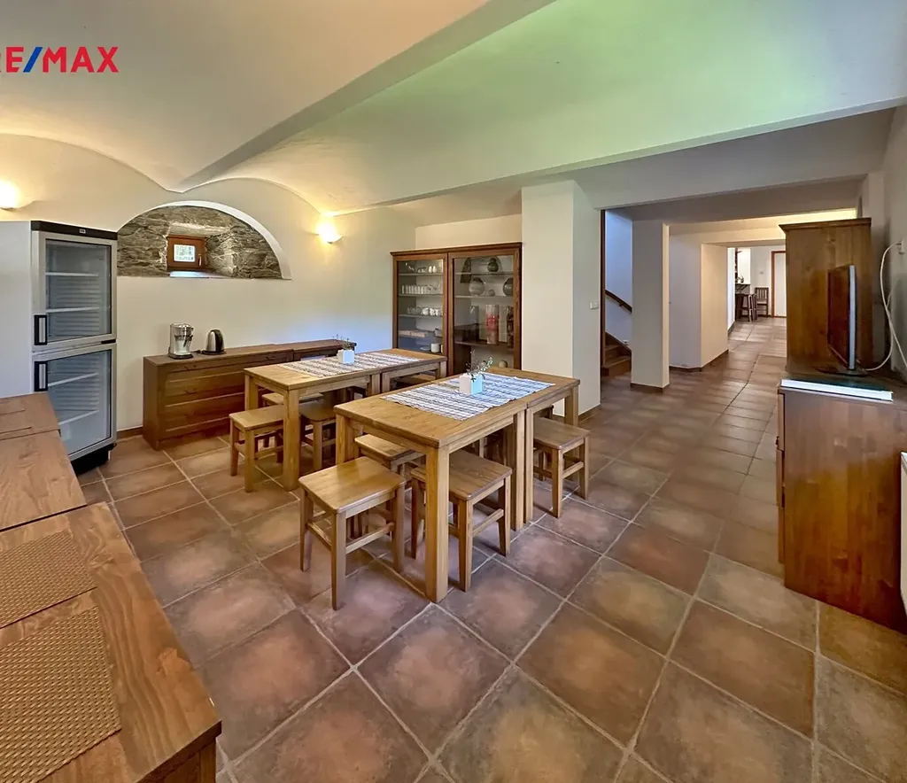 Veškeré zařizovací předměty nemovitosti zhotoveny na zakázku s využitím služeb místních řemeslníků, výsledky jejich práce vdechly nemovitosti neopakovatelnou útulnou atmosféru.