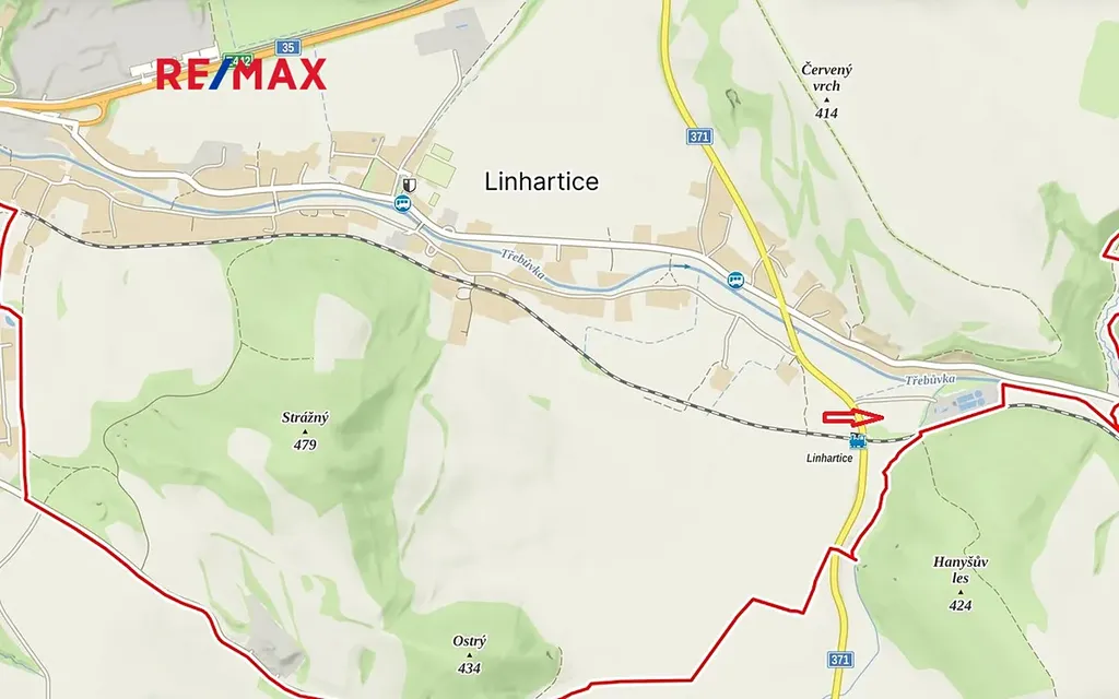 V těsné blízkosti pozemku se nachází vlaková zastávka stanice Linhartice, kdy se jedná o místní spoj do Moravské Třebové nebo Městečka Trnávky. Autobusová zastávka je do 500 m.