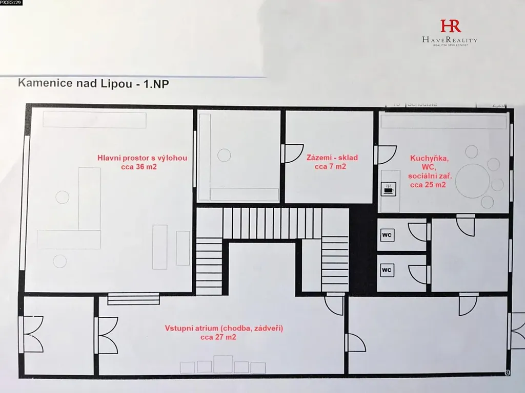 Nabízíme Vám k pronájmu komerční prostory v ulici Vackova č.p. 97 (Husovo náměstí), centrum města Kamenice nad Lipou, okr. Pelhřimov. Jedná se o zrekonstruované a průběžně udržované, komerční prostory v přízemí budovy (celé přízemní podlaží domu). Vytápění – ústřední (plynový kotel), elektřina, inženýrské sítě. Podlahy – dlažba. Tento komerční prostor má celkovou výměru cca 95 m2 a skládá se z těchto místností: hlavní prostor (kancelář) cca 36 m2 se dvěma výlohami do ulice o délce 4 m, kuchyňka s WC a sociálním zázemím cca 25 m2, zázemí – sklad cca 7 m2, vstupní atrium (chodby) cca 27 m2. U odděleného vstupu ATM terminál s možností 24 hod. provozu s frekvencí klientů. Do prostorů je možný vstup přímo z ulice, či ze dvora za domem, který je po dohodě s majitelem objektu možno také pronajmout. Výměra dvora činí cca 120 m2 (samostatný vstup z ulice Zámecká). Také, je možnost pronájmu sklepních prostor v suterénu domu o výměře cca 130 m2. Parkování na náměstí před objektem.