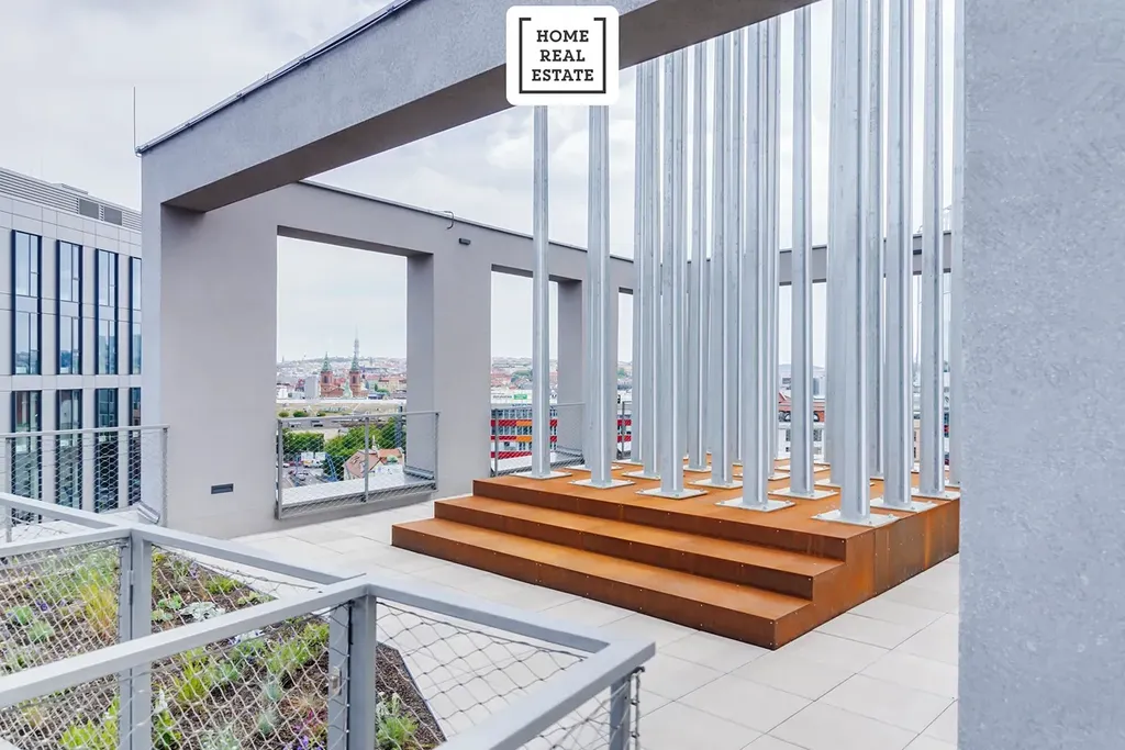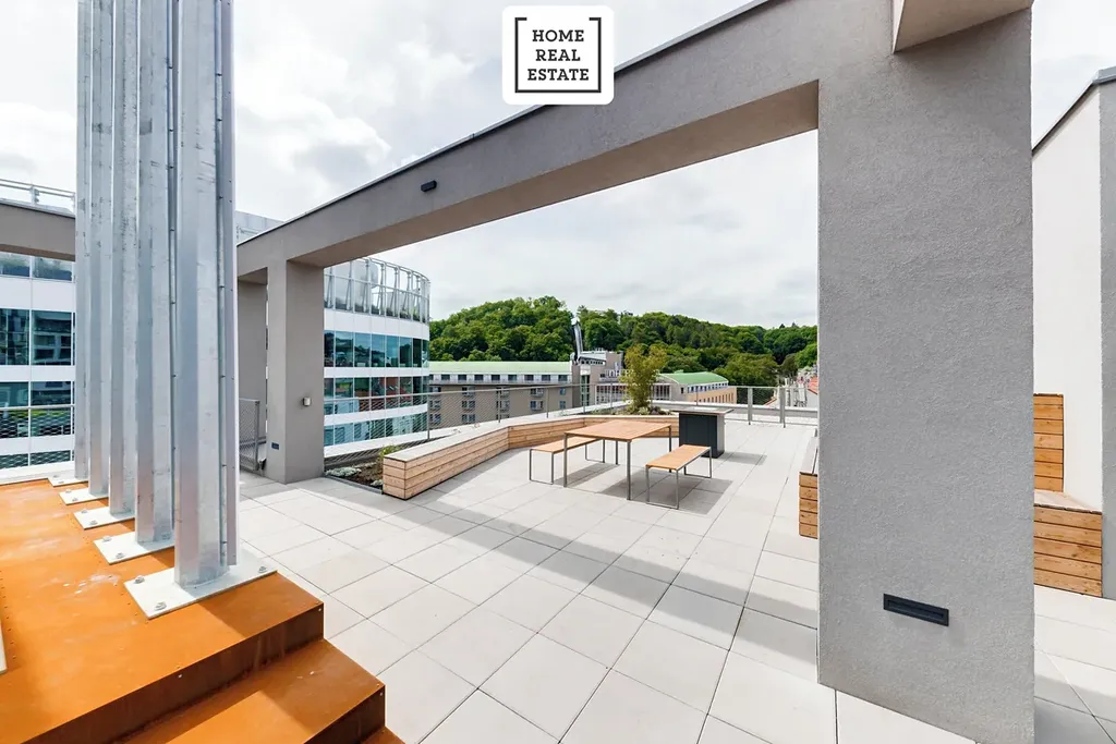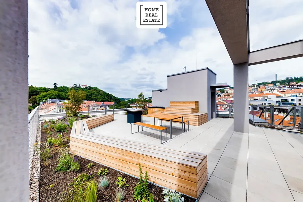 Rezidenční projekt nabízí řadu nadstandardních služeb, včetně boxů pro vyzvedávání zásilek a potravin. Pro rezidenty je k dispozici také společná střešní terasa s grilem a venkovním umyvadlem.