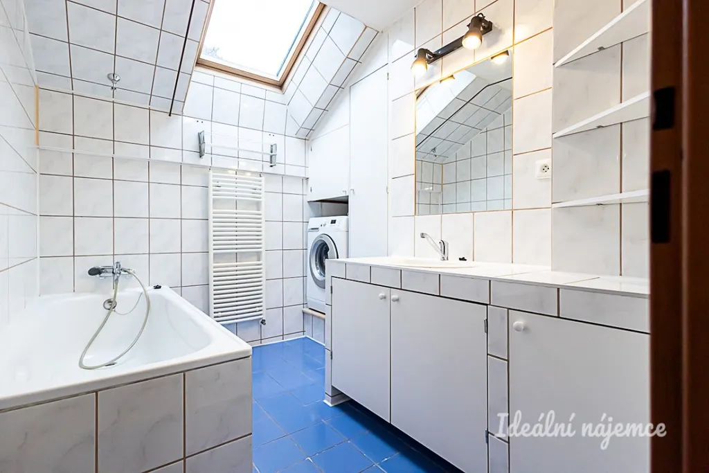 K dlouhodobému podnájmu nabízíme světlý byt o dispozici 3+1 v klidné lokalitě Praha 10 - Záběhlice. Byt o celkové výměře 74 m² se nachází v podkroví dvoupatrového rodinného domu. K bytu přísluší garážové stání situované v přízemí objektu.