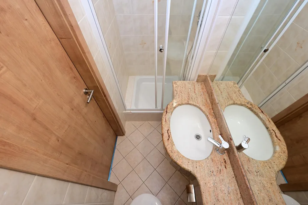 Byt je orientován západním směrem, je tedy velmi tichý. Pokoj je zela nová rekonstrukce, koupelna s mramorovým umyvadlem původní. Díky výborné dostupnosti na metro a tramvajový uzel ideální jako městské bydlení. Současně velká terasa uspokojí téměř všechny nároky na volný čas.