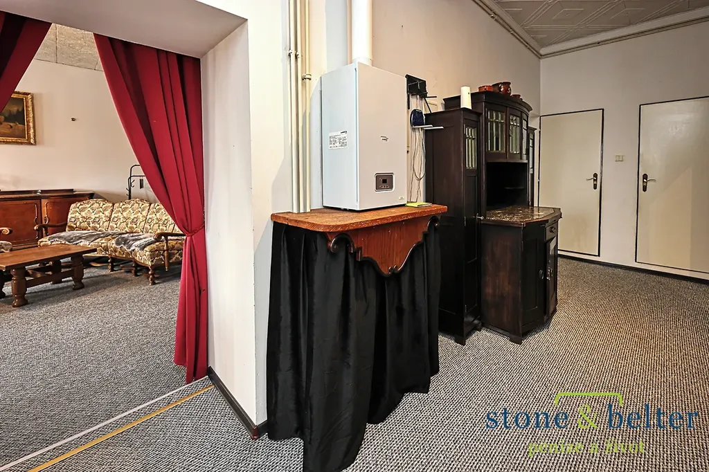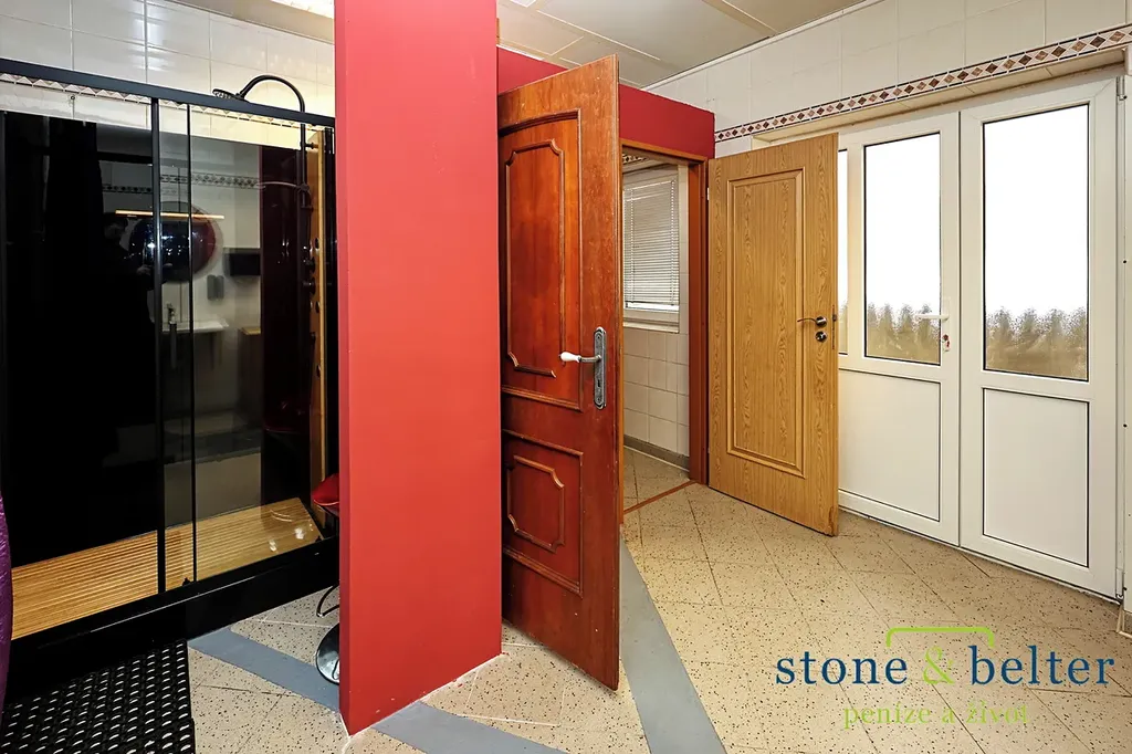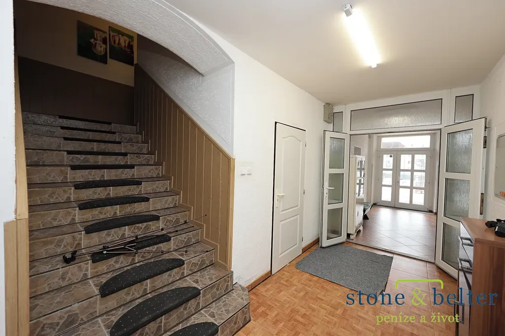- dlouhá chodba propojující vchod z náměstí s vnitroblokem a všechny místnosti (38 m2)