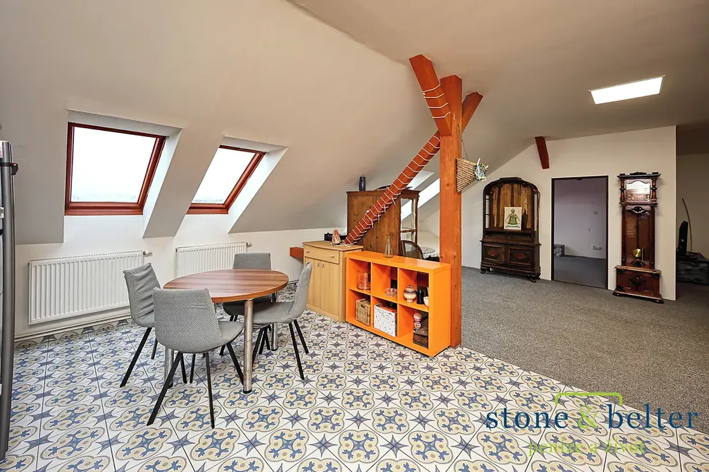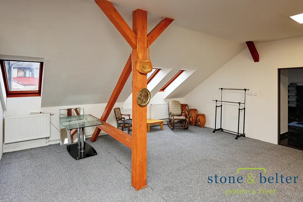 V každém patře se nachází samostatná, nadprůměrně velkoryse řešená bytová jednotka, ideální pro dlouhodobé i krátkodobé ubytování. V přízemí dům nabízí další bytovou jednotku – garsonku – a zároveň komerční prostor s přímým vstupem z náměstí, perfektní pro obchůdek, kavárnu, služby či jinou provozovnu, která těží z přirozeného pohybu lidí v centru města.