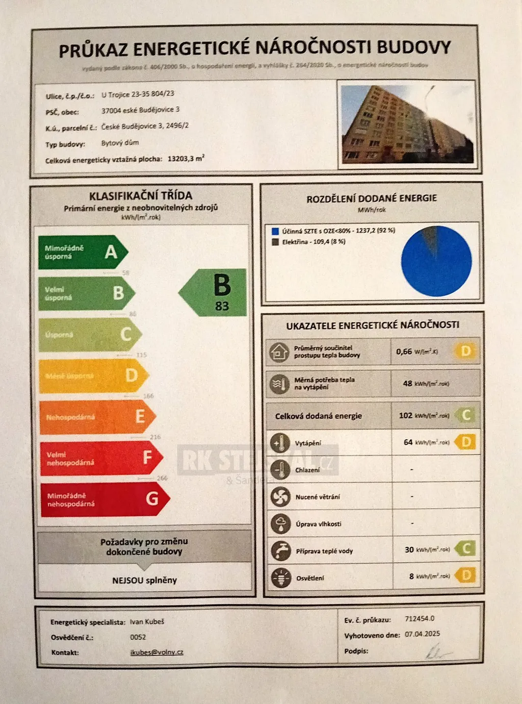 Panelový dům je po revitalizaci se zateplenou fasádou, novými plastovými okny a novým výtahem. Stoupačky jsou realizovány v plastu.