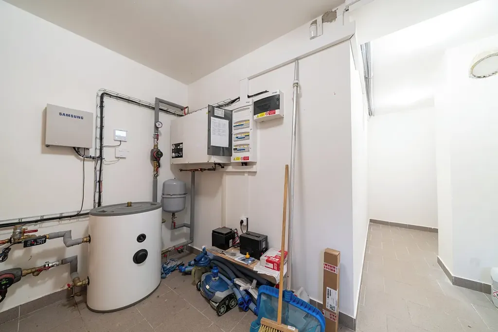 Tepelné čerpadlo vzduch–voda, elektřina 230/400 V, studna s úpravou vody a ČOV pro celý objekt. V obci je schválen projekt kanalizace a rozšíření vodovodu. Dům je nepodsklepený, ve velmi dobrém stavu, bez vlhkosti.