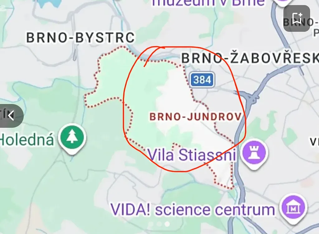 Lokalita je uvedena orientačně; nemovitost se nachází v širší části Brna v oblasti Komín / Jundrov / Žabovřesky, která nabízí výbornou dostupnost do centra města, kompletní občanskou vybavenost, blízkost přírody a dlouhodobě stabilní poptávku po rodinném bydlení.