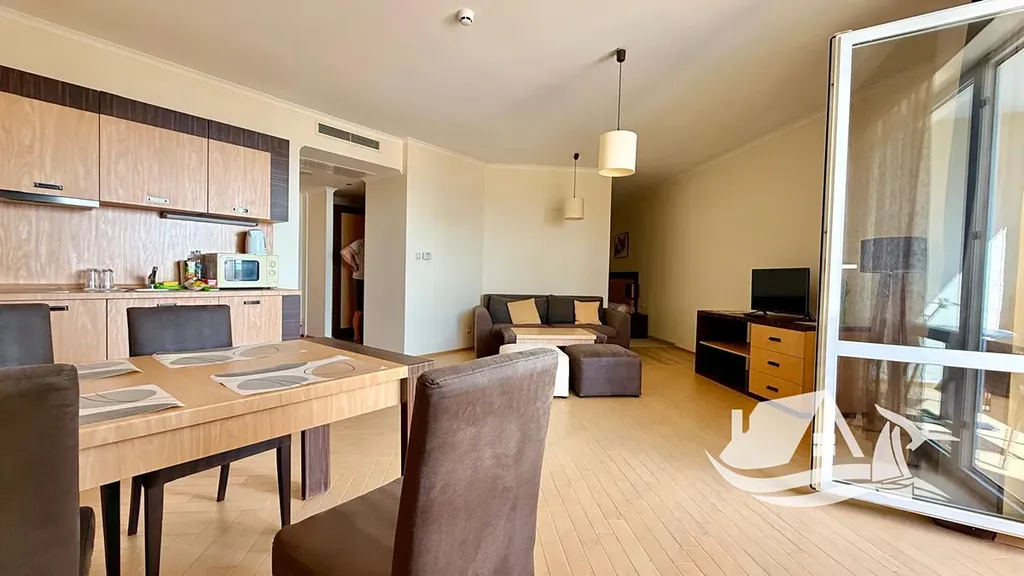 Představte si ráno, kdy první sluneční paprsky jemně dopadají na balkon, vzduch voní solí a moře se třpytí v dálce. Den tu nezačíná spěchem, ale tichem a klidem, který je pro pobřeží typický. Přesně takový pocit nabízí tento prostorný apartmán v ikonickém resortu Majestic Beach Resort, přímo v srdci Slunečné pobřeží.