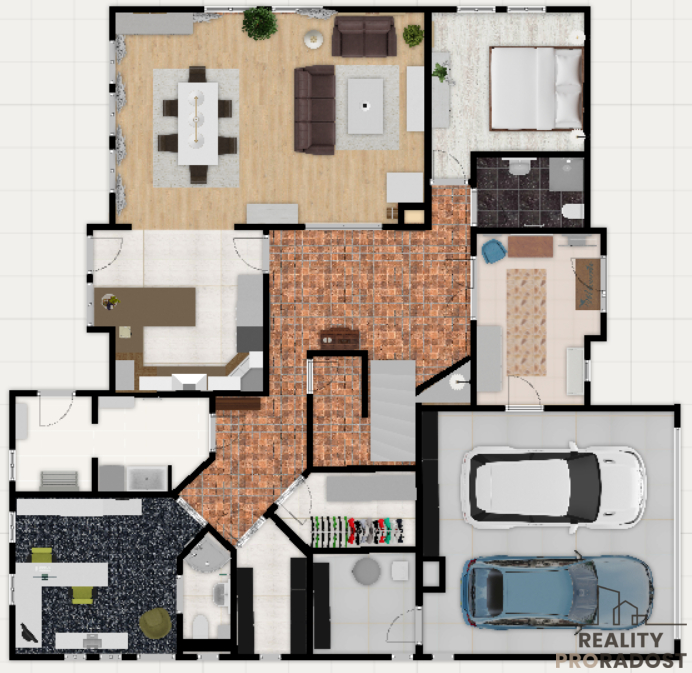 • velkorysý byt v patře o velikosti cca 183 m² s mezonetovými pokoji, saunou a dalším užitným podlažím
