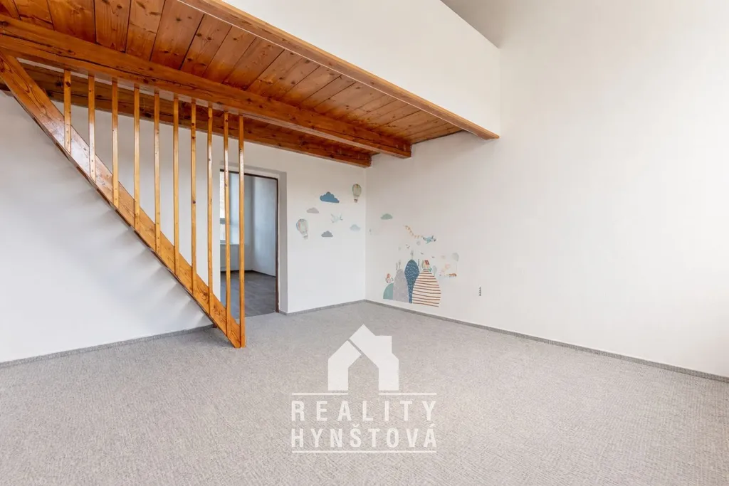 V obývacím pokoji najdete i menší mezipatro – ideální místo na relax po práci, pro čtení nebo tvoření.