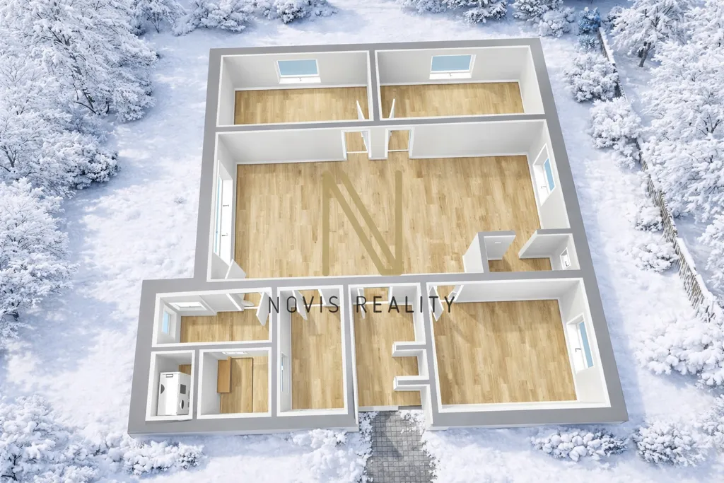Dům nabízí moderní, vzdušnou a funkční dispozici 4+kk.