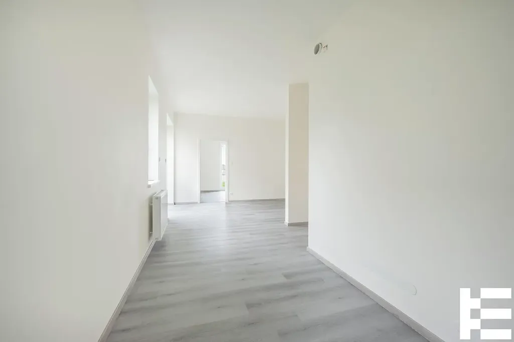 Bytová jednotka 2+kk o podlahové ploše 60,24 m² (dle vyhl. 366/2013 Sb.) se zahradou (122,94 m²) , která se nachází ve 1. NP a je členěná na vstupní chodbu (8,56 m²), obývací pokoj + kk (23,07 m²), ložnici (12,57 m²) koupelnu (5,78 m²) a sklep.