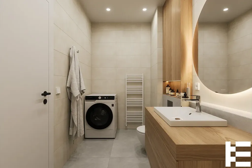 Byt zaujme vysokými stropy, které umocňují vzdušnost interiéru, a velkoformátovými okny s jižní orientací, díky nimž je prostor krásně prosvětlený. Součástí bytu je i útulná lodžie, ideální k ranní kávě nebo večernímu odpočinku.