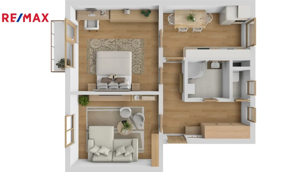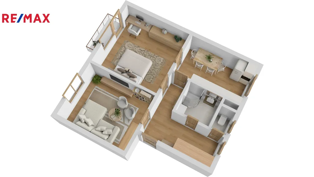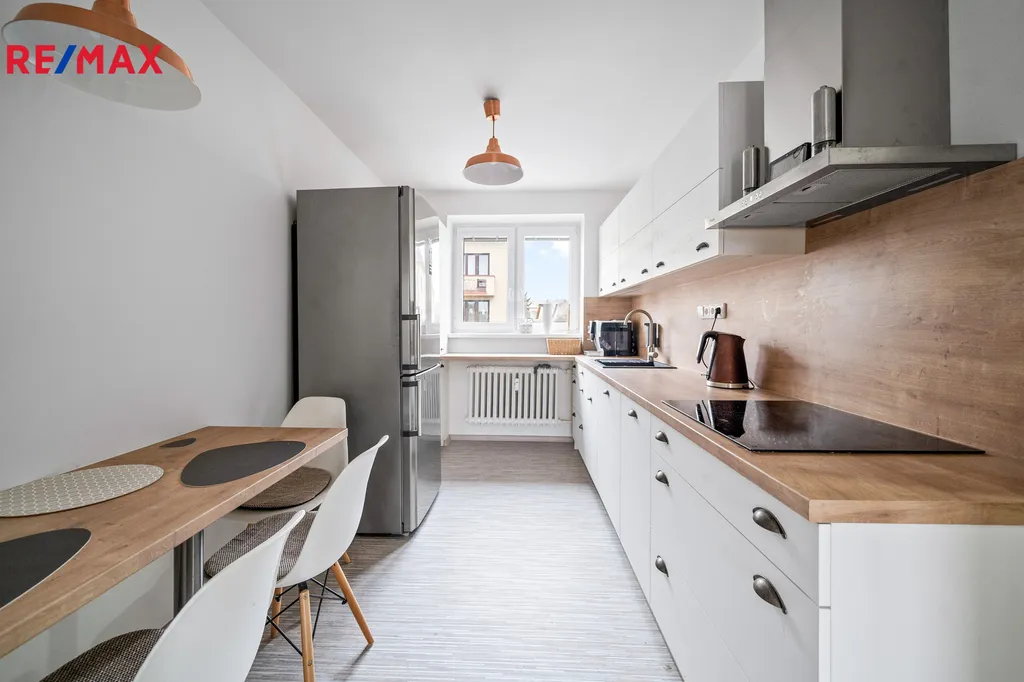 Ve výhradním zastoupení společnosti RE/MAX Future nabízíme k prodeji moderní světlý byt s balkonem o dispozici 2+1, který se nachází ve 2. nadzemní podlaží cihlového bytového domu v klidné části města Dobrušky v ulici Čsl. armády. Velmi zdařile zrekonstruovaný byt o celkové podlahové ploše 68 m2 (včetně 2 sklepů - 12,1 m2 a balkonu 2,36 m2) a užitné ploše 54 m2 má následující dispozici - kuchyň, obývací pokoj, pokoj, chodbu, koupelnu se sprchovým koutem a toaletu. V rámci kompletní a pečlivé rekonstrukce byly provedeny tyto práce: nové rozvody a omítky v celém bytě, nové podlahoviny v kuchyni a na chodbě, v pokojích renovované parkety, kompletně zrekonstruovaná koupelna, nové interiérové dveře s obložkami, zabudována moderní kuchyňská linka s vestavěnými spotřebiči přímo na míru od truhláře. Prostorná chodba je vybavena nábytkem na míru a to vestavěnou skříní a menšími skříňkami.