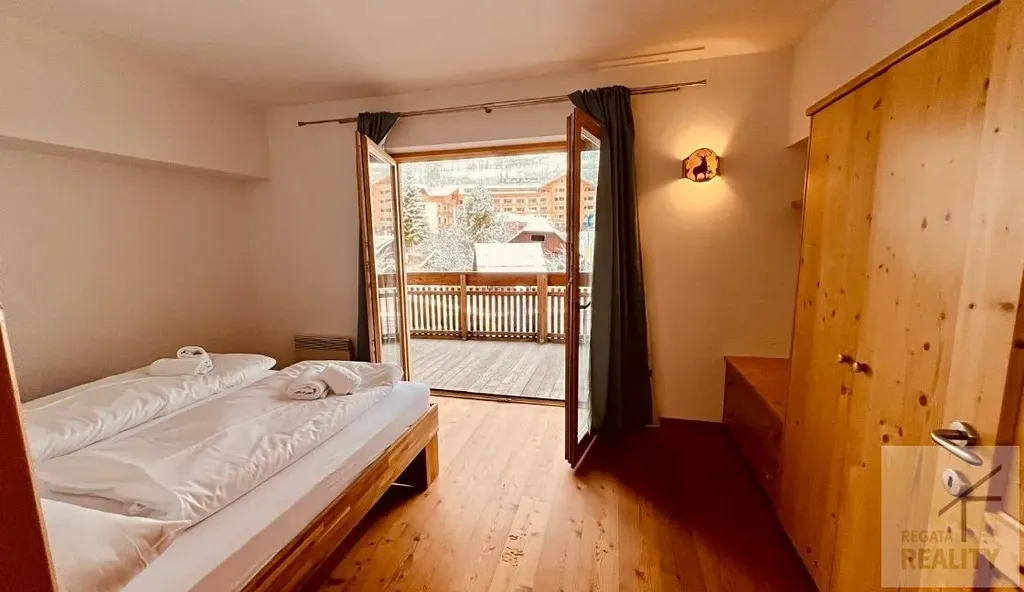 Obytná plocha: cca 85 m² 2 pohodlné ložnice 2 balkony s úchvatnými horskými a zimními panoramaty 2 plně vybavené koupelny.