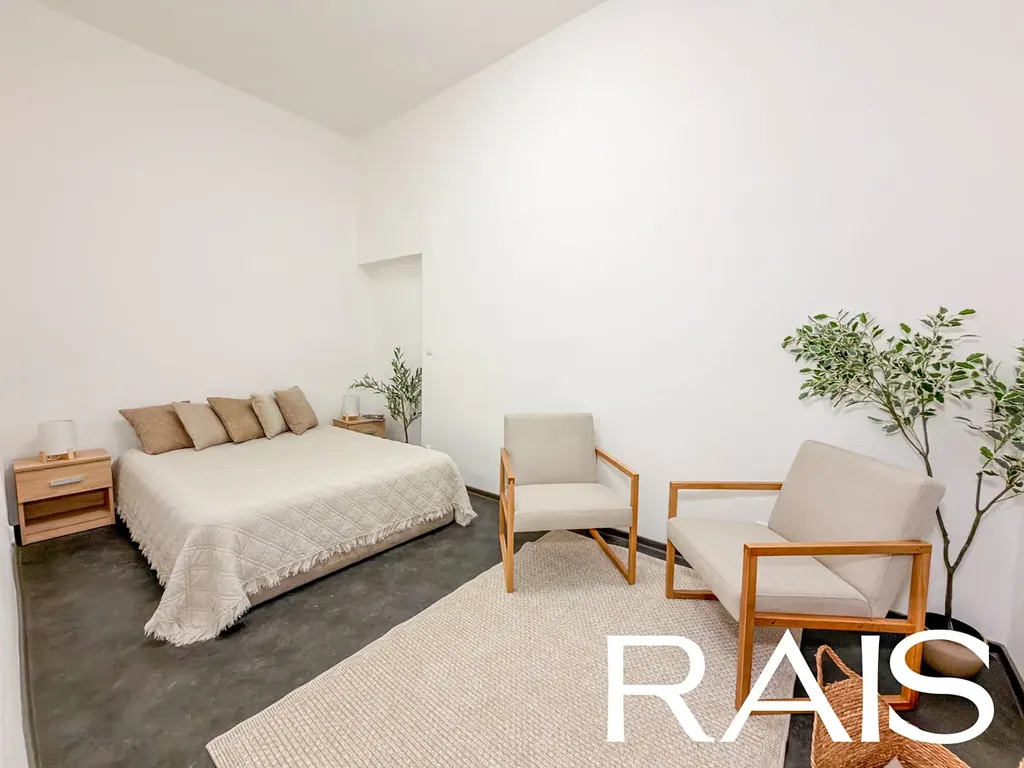 Ateliér je umístěn ve zvýšeném přízemí, což zajišťuje příjemné soukromí a zároveň okamžitý kontakt s pulzujícím městským životem. Hlavní místnost je připravena na instalaci kuchyně, zatímco druhá plnohodnotná místnost s oknem a přímým vstupem na terasu nabízí variabilní využití – může sloužit jako ložnice, pracovna, salonní místnost, konzultační prostor či jídelna propojená s venkovní zónou. Koupelna odpovídá současným standardům a interiér je řešen čistě, funkčně a s ohledem na praktické využití. Dům je vybaven vlastní plynovou kotelnou, což zajišťuje efektivní a spolehlivé vytápění.