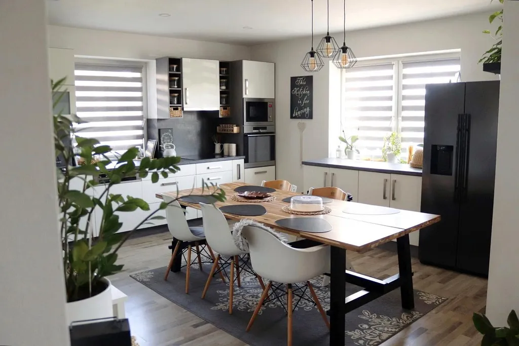 velká kuchyně s jídelnou navazující na útulný obývací pokoj