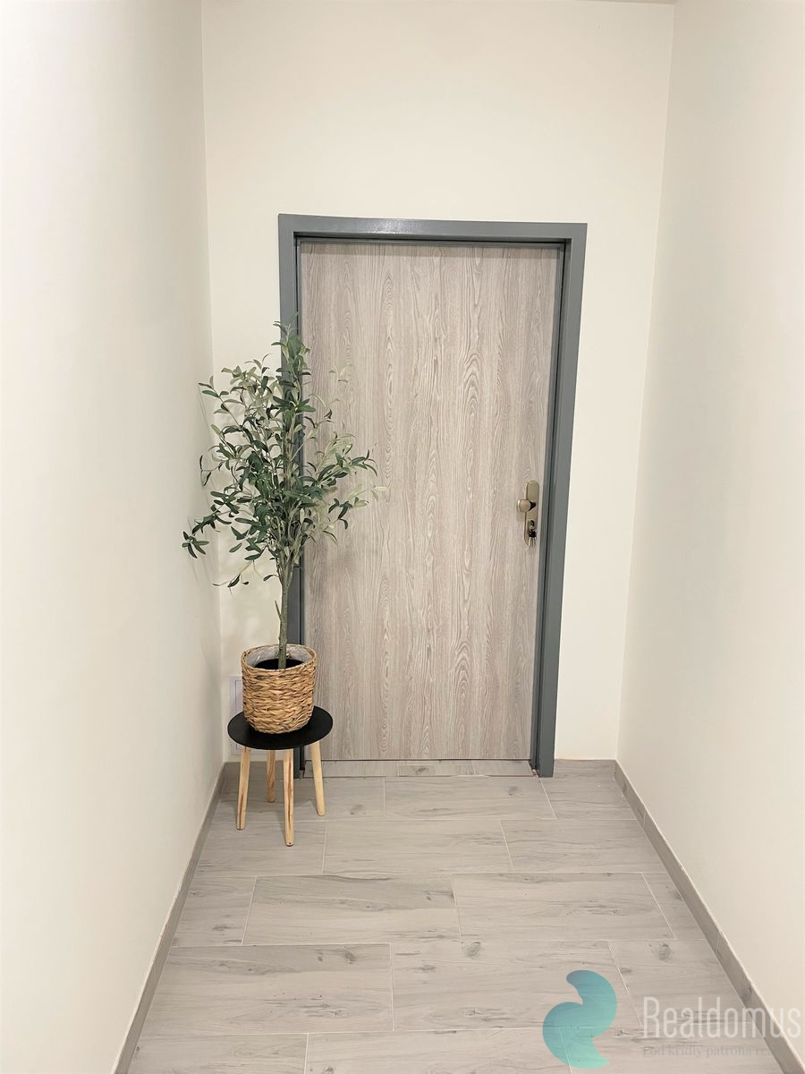 Byt je vybaven kuchyňskou linkou (el. trouba, indukční deska, digestoř, myčka). Dále vestavná skříň v pokoji. Byt je po kompletní rekonstrukci – nová plastová okna, podlahy, rozvody vody a elektřiny, samostatný bojler, nové zateplení. K dispozici je sklep a kolárna/kočárkárna v přízemí domu.
