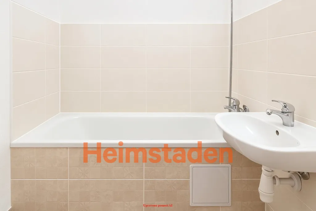 Skutečnou třešničkou na dortu je koupelna po kompletní rekonstrukci – moderní obklady v pískovém dekoru, vana a velmi vkusné provedení, které působí čistě, svěže a nadčasově.