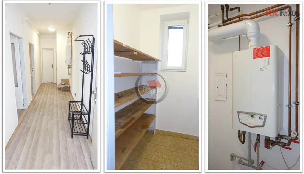 Byt je částečně vybaven – k dispozici je kuchyňská linka a sporák s troubou. Vytápění je řešeno ústředním plynovým topením. K bytu náleží sklep a je zde možnost parkování u domu.