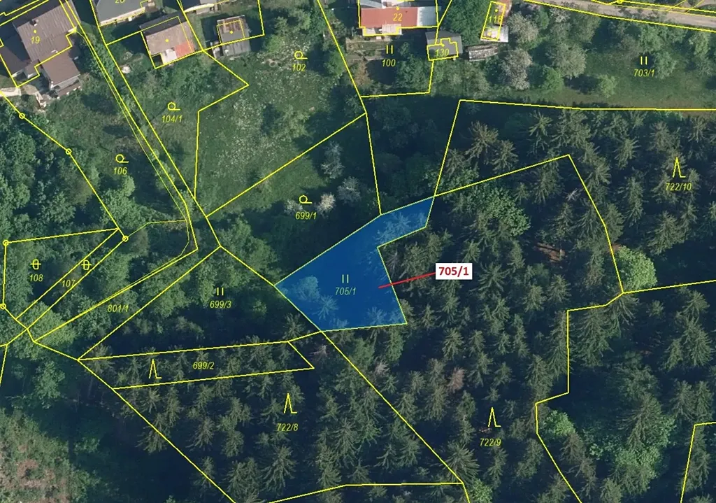 Trvalý travní porost o výměře 438 m2, parcelní číslo 705/1, podíl 1/1, katastrální území Lhotka u Zlaté Olešnice, obec Zlatá Olešnice, obec s rozšířenou působností Tanvald, okres Jablonec nad Nisou, Liberecký kraj.
