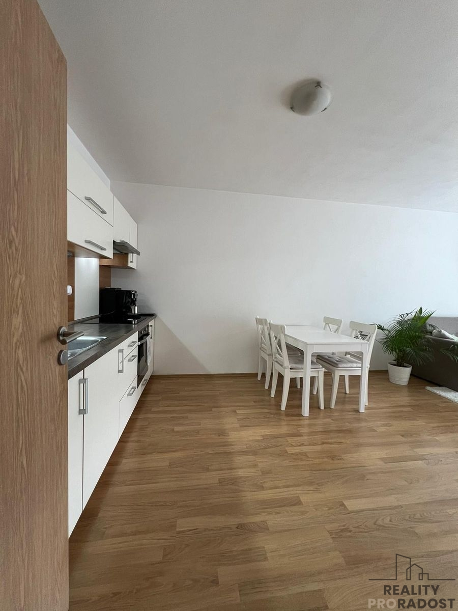 Skládá se z předsíně, koupelny s vanou a WC, obývacího pokoje s kuchyňským koutem, pokoje a balkonu. Nová kuchyňská linka s el. troubou, mikrovlnka, digestoř, indukční varná deska, myčka na nádobí, kombinovaná chladnička. Pokoj disponuje velkým oknem, které zaručuje v prostoru dostatek světla a sluníčka.