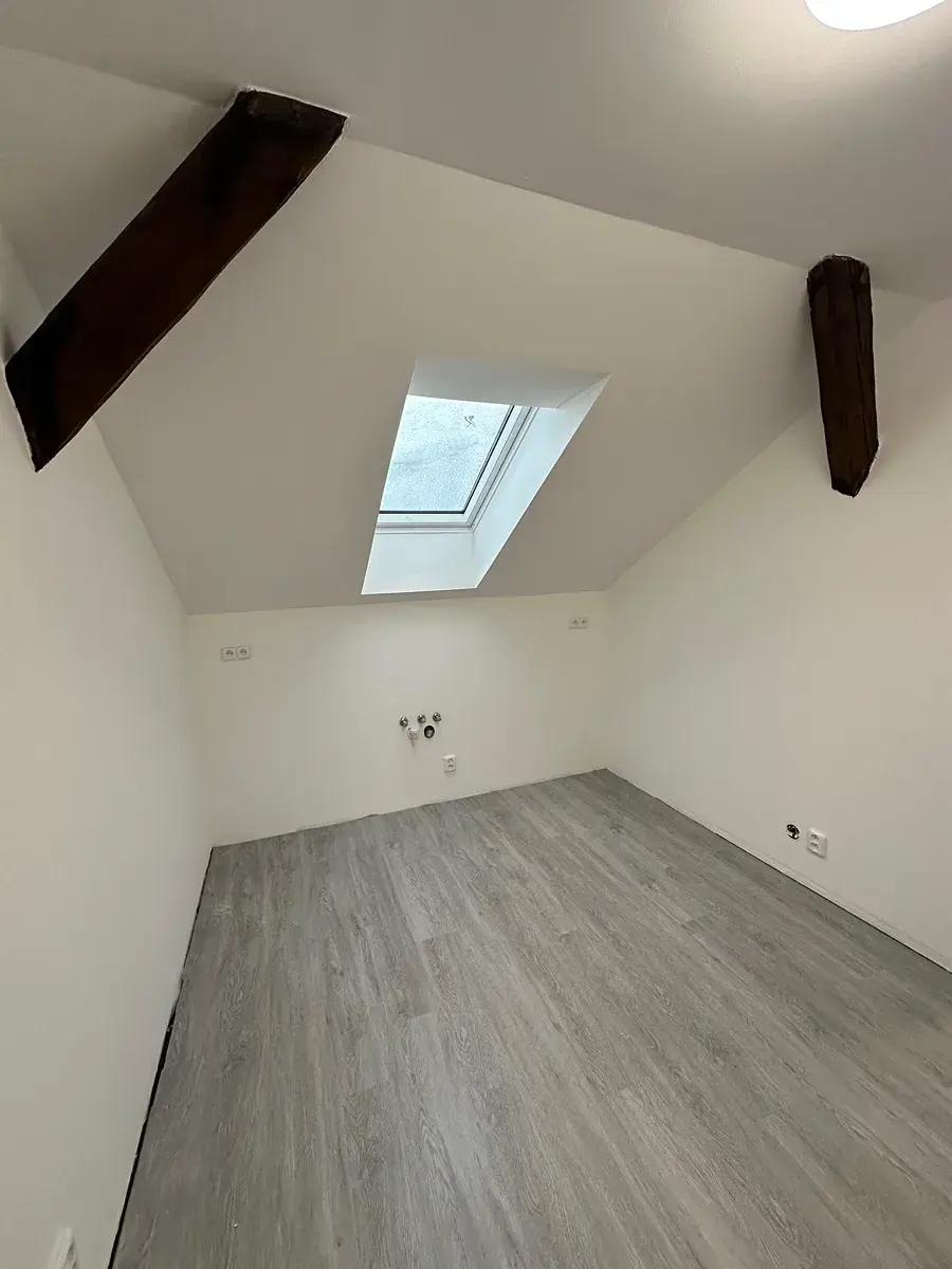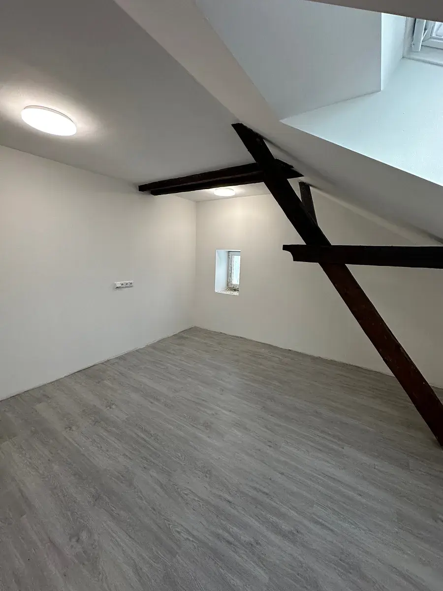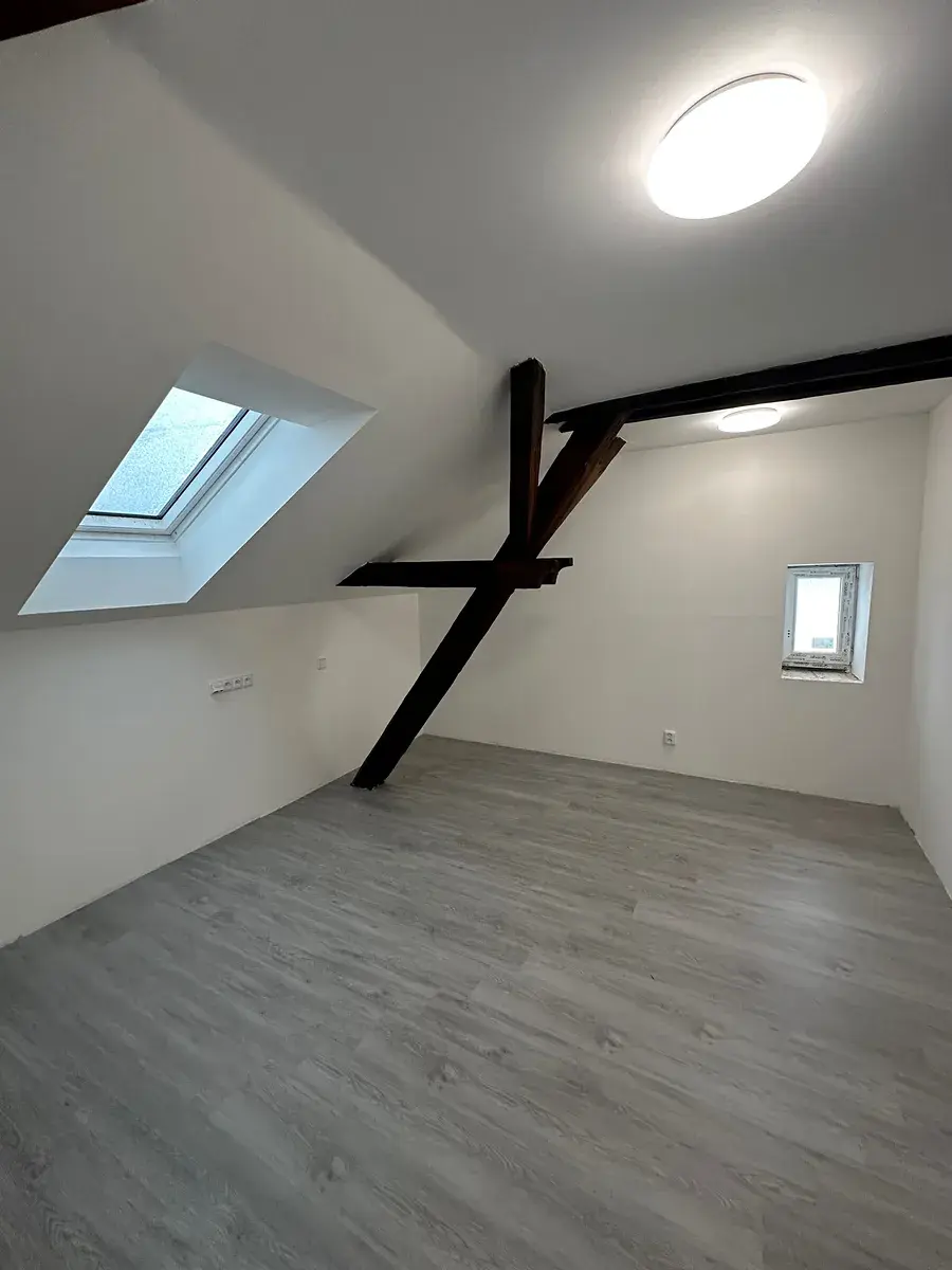 V bytě je příprava na kuchyňskou linku, v koupelně jsou přípojky na pračku a sušičku. V koupelně je instalován topný žebřík.