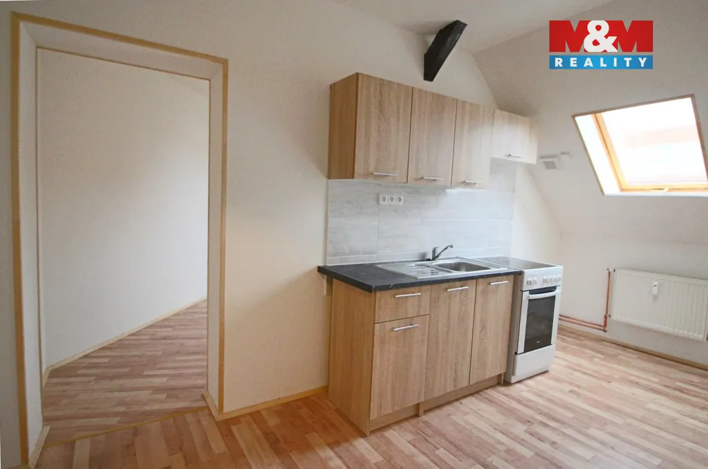 Pronájem podkrovního bytu 2+1 o rozloze 45 m² ve třetím nadzemním podlaží zděného domu, který se nachází nedaleko centra města. Vytápění je centrálním plynovým kotlem, ohřev vody elektrickým bojlerem. V bytě je kuchyňská linka s elektrickým sporákem. Volný k nastěhování po ihned. Více informací u makléře.